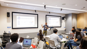 寺内副主幹研究員は、2つのセッションでスピーカーとして登壇しました。セッション「危機に瀕する海岸線:変化のマッピングと災害への対応(Coastlines in Crisis: Mapping Change & Navigating Hazards)」では、創価大学理工学研究科環境共生工学専攻Robel ASHENAFI(博士課程1年)氏とともに、Googleの衛星データ解析プラットフォームであるGoogle Earth Engine(GEE)を基盤とする二つのツール、地球規模の富栄養化状況をマッピングするGlobal Eutrophication Watch(GEW)と、海草藻場の分布をマッピングするSeagrass Mapperについて発表しました。さらに、セッション「データカタログの最新情報(What’s New with Data Catalogs)」では、GEWに欧州宇宙機関(ESA)が提供する長期時系列データ「ESA-CCIデータ」を実装したことを報告しました。質疑応答で聴講者からの「GEWのESA-CCIデータは、有害藻類のモニタリングに使えるか」という質問に対し、寺内副主幹研究員は、本ツールは水質の長期的な変化傾向を見るのに適している一方、有害藻類の発生のような短期的な現象を捉えるには専用のアルゴリズムに加え、風や海流データが別途必要になると回答し、GEWの適切な利用範囲を説明しました。また、利用可能な公開データセットが無い場合、地域の特性を考慮したデータセットをGEEに取り込むことの重要性を強調しました。
